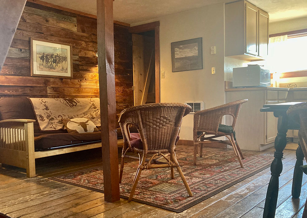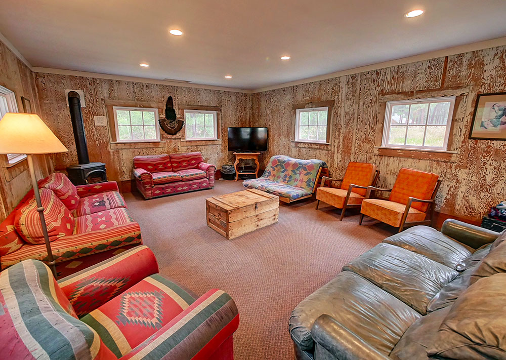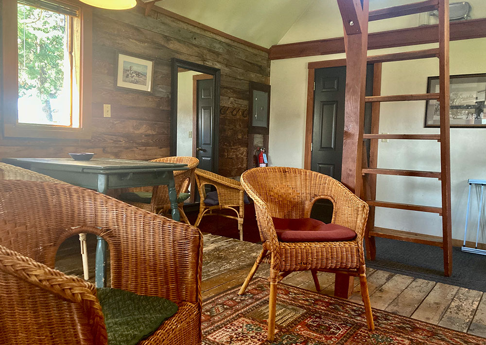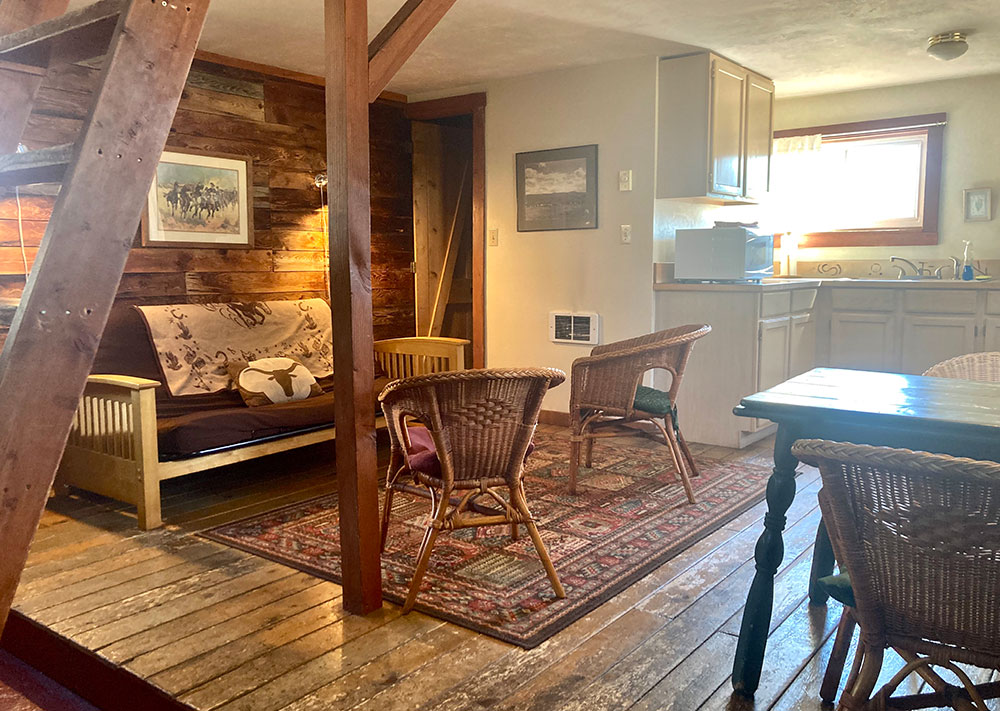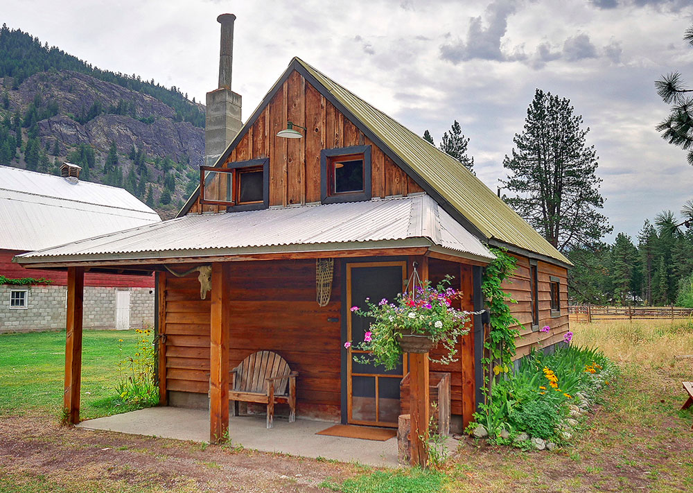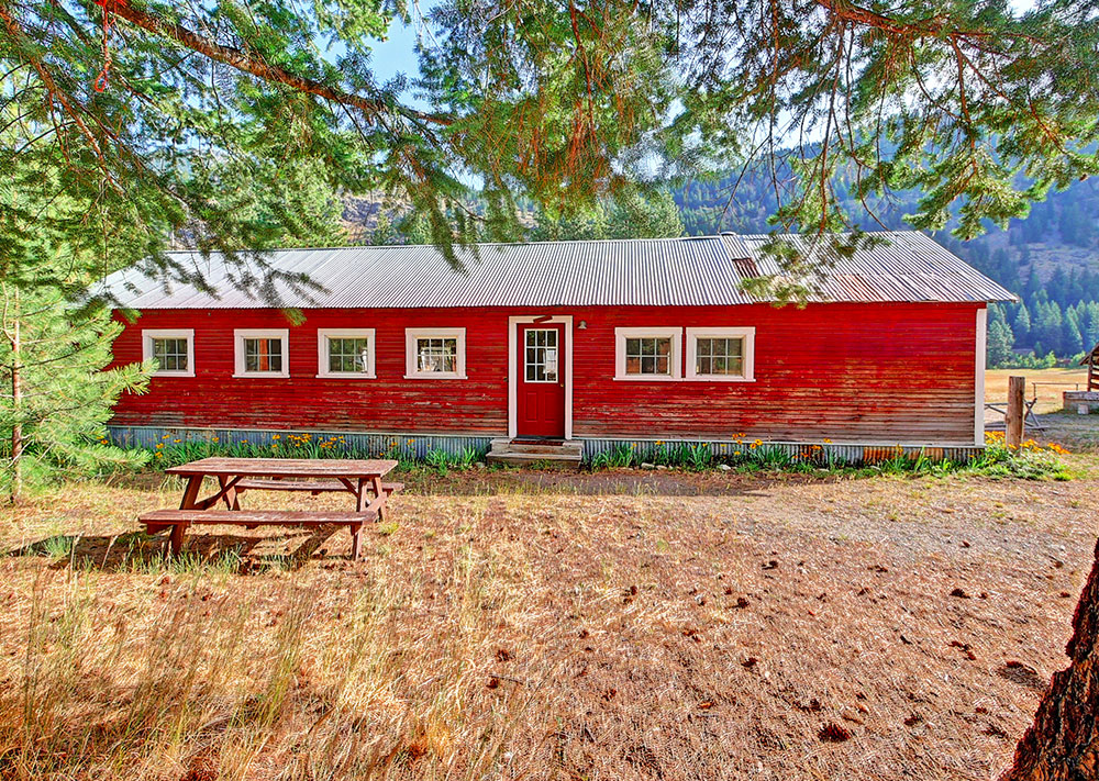 This building was once a mining cook shack, then a chicken coop and now our conference/play room. We encourage our guests to use it for a meeting room, a game room or a TV room.
