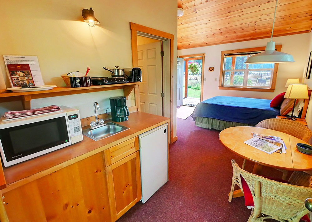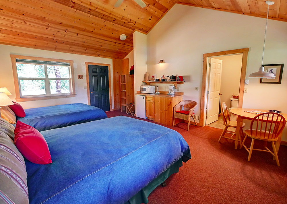 The Mazama Ranch House is comprised of 8 suite size rooms with kitchenettes and two cabins. The property sleeps a total of 40 people in every bed. The Large house is 5 bedrooms with 2 baths that sleeps a total of 13 people. The Long Horn cabin sleeps 3 with a queen bed and pull out futon. All rooms and cabins are fully furnished with all the cooking supplies that one might need. All units have wrap around porches with covered decks, outdoor furniture, a hot tub and access to picnic tables and barbecues.